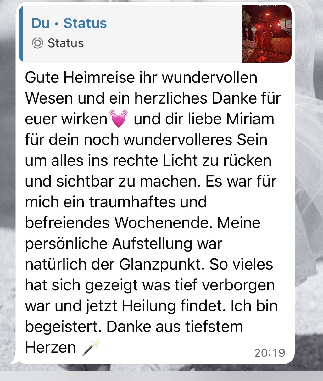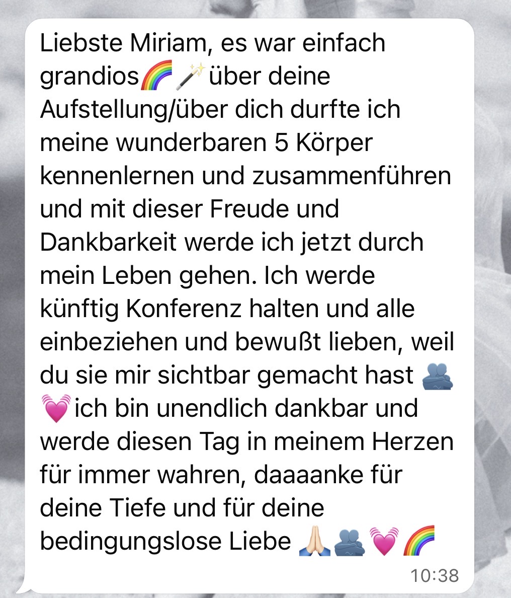 Oft geschieht in diesen Aufstellungen etwas, das sich wie ein kleines Wunder anfühlt – ein tiefes Zurückfinden in deine eigene Kraft, Lebendigkeit und Ganzheit.